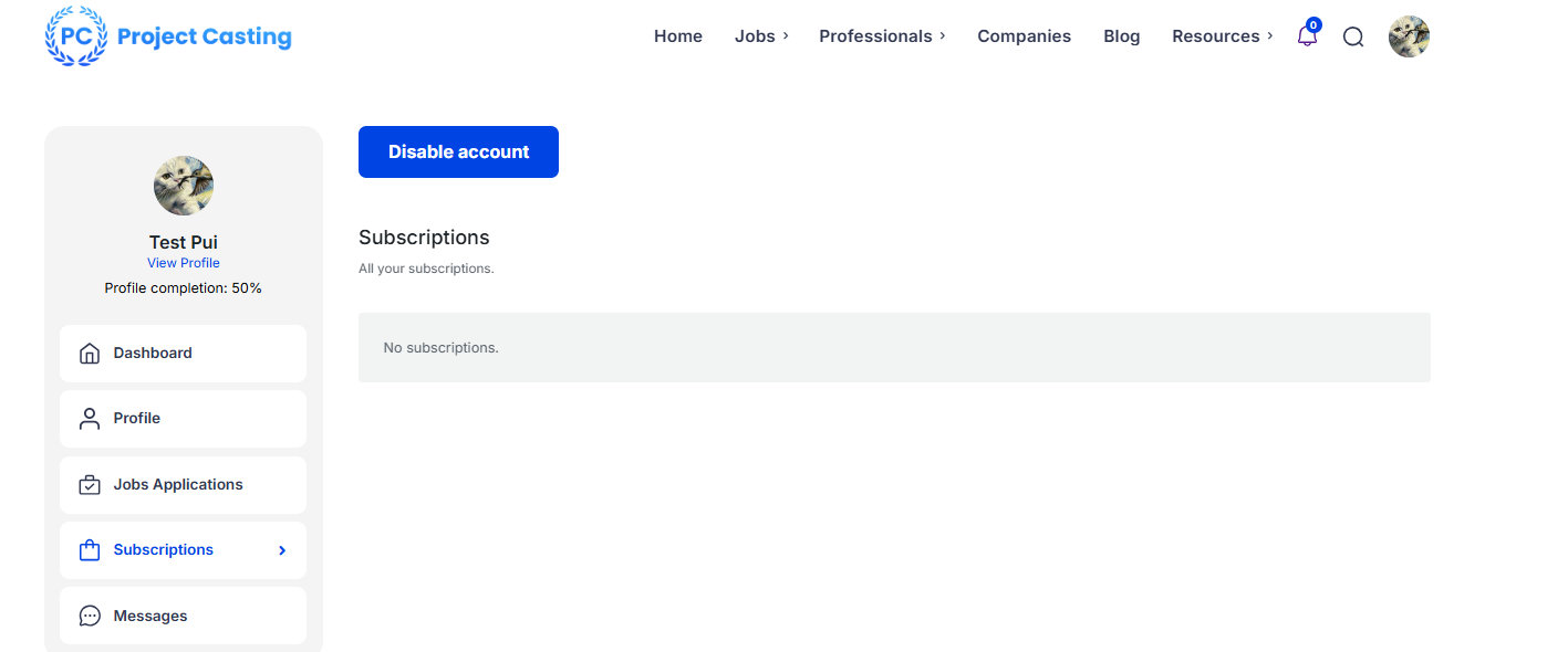 Begin by logging into your Project Casting account. Once logged in, you will automatically be directed to your user dashboard, which provides access to your profile, job applications, subscriptions, and more.
